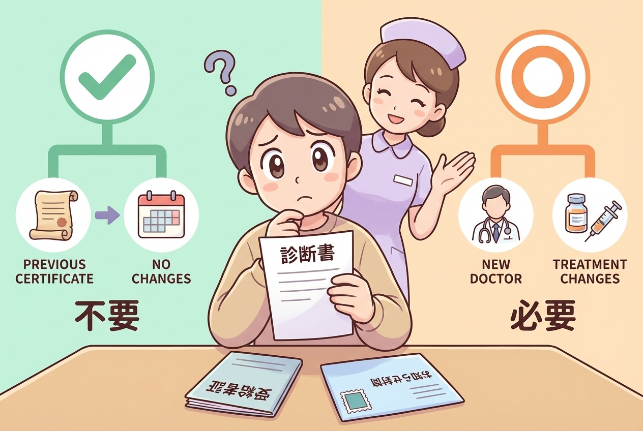 更新手続きで最も読者を悩ませるのが「診断書の要否」です。